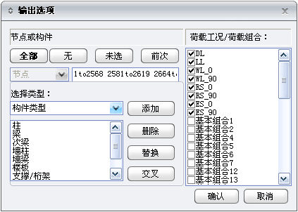 (2)荷载工况/荷载组合:选择要输出的荷载工况或荷载组合;