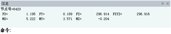 (5)点取节点:此处文本框为草绿色时,鼠标点击模型窗口中某节点,可在信息窗口显示该节点的所有反力结果(图8.2.1-6); |