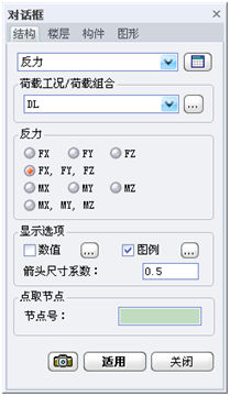 (4)显示选项:选择是否输出反力数值和图例,确定反力结果箭头大小;