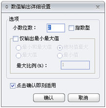 ① 数值:勾选此项将输出具体数值。点击右侧的 键,弹出数值输出详细设置对话框,如图8.2.1-4,在此可设置数据的格式和内容。字体的颜色、大小可在显示选项中定义。