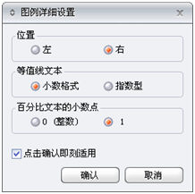 ② 图例:勾选此项将显示图例,点击右侧的 按钮,将显示如下对话框,如图8.2.1-5,可设置图例显示位置、图例中数值形式(小数格式、指数格式)。 |