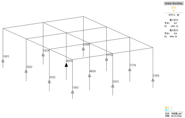 :照相功能,可将当前模型空间显示的图形保存起来,保存到后处理Figure结果用户定义的图形中,双击此文件可以再次查看;完成上述选项后,点击 即生成相应结果图形(图8.2.1-5),红色箭头表示反力最大的节点,点击 则关闭此对话框。