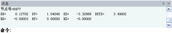 (6)点取节点:此处文本框为草绿色时,鼠标点击模型窗口中某节点,可在信息窗口显示该节点的所有位移结果(图8.2.2-6); |