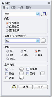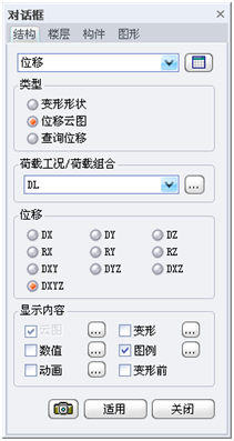 此项功能为在三维图形中输出结构位移及相应的表格结果。