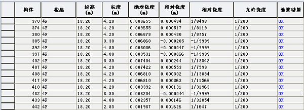 (1)表格中输出的钢筋混凝土梁的挠度值只是梁的弹性挠度,没有考虑构件的实配钢筋的影响;但对于钢梁此挠度值有实际意义; (2)梁、板的绝对挠度、相对挠度等的详细介绍请参见第8.6.3节内容。