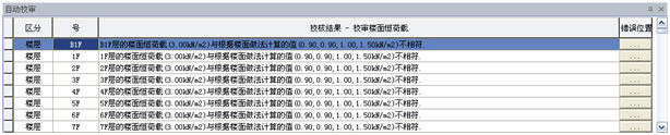 用于查看每个分项的校审结果,包括:荷载、材料、截面和布置、分析、设计和经济性,详细校审项目可参见第10.2节的介绍。