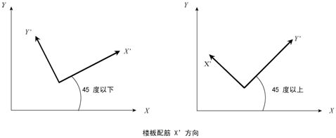 有直角边时,将直角边的两个边方向作为配筋方向,将其中的短边方向作为X方向。