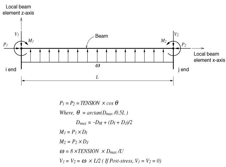 The concept of defining the pre-stress loads in beams is illustrated below.