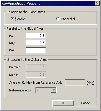 Relation to the Global Axes Parallel Unparallel Parallel to the Global Axis Kox Koy Koz Unparallel to the Global Axis Ko Max Ko Min Angle of Ko Max from Reference Axis Reference Axis Seepage Parameter Permeability Coefficient Enter