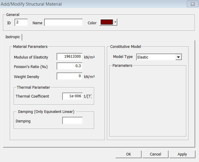 the color of Material property. Material Parameter Modulus of Elasticity Enter