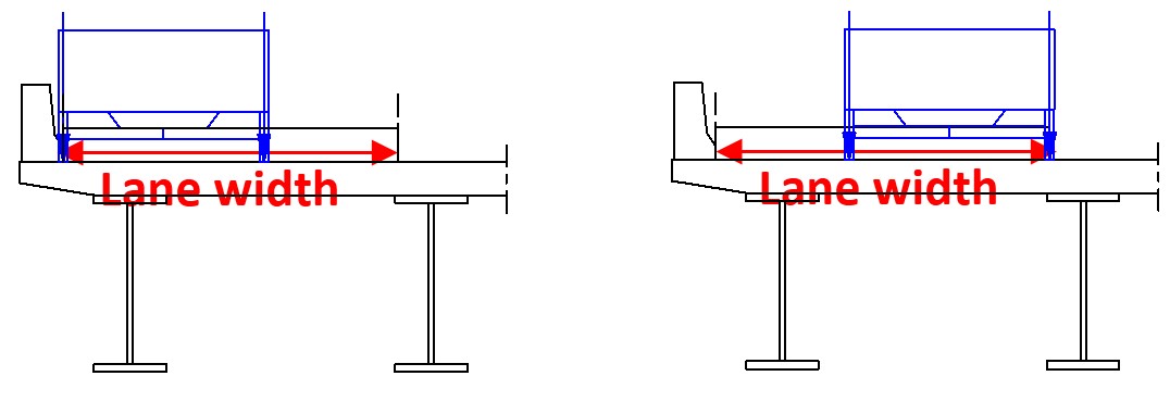 However, the most critical member forces, stresses or reactions at each location may not always result with the vehicle loads placed in the middle of traffic lanes. In other words, the worst effect of vehicle placement is not guaranteed by placing the vehicle loads in the middle of the lane only.