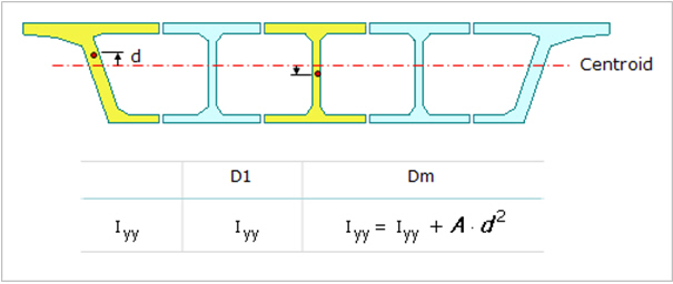 Dm: The section properties of each longitudinal member with regard to the centroid of bridge cross-section before division.
