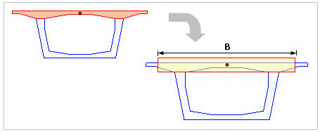 For PSC sections (except for Value type PSC sections) and Composite sections, which are relatively complex but frequently used, the program automatically defines the temperature load by dividing and transforming the corresponding zone. In case of PSC section as shown in the figure above, the transformed rectangular zone can be automatically calculated by selecting the PSC/Composite option instead of manual calculation. |