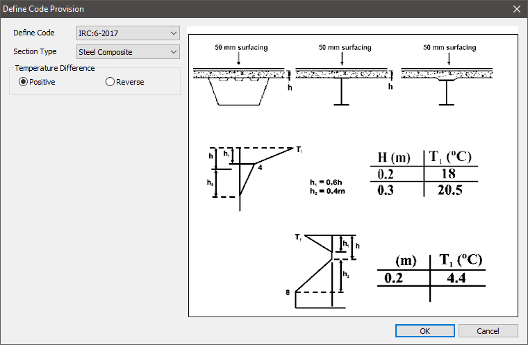 If a section for which a temperature difference is considered is not a rectangle, the section should be transformed into an equivalent rectangular section, which produces the identical moment due to the temperature load. And then the user needs to input the width and height of the equivalent rectangular section.