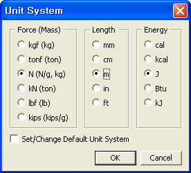 Force Set the unit of force Length Set the unit of length Energy Set the unit of energy