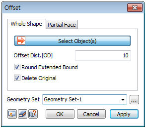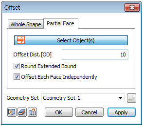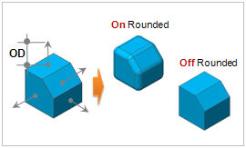 Check the [Round Extended Bound] to connect any disconnected offset faces of the object using curved faces. The offset distance (OD) is the radius used for the fillet.