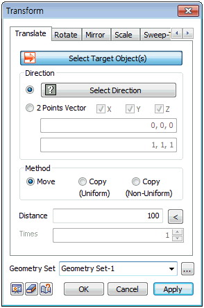 The target object can be moved/copied using [Move], [Copy (Uniform)] and [Copy (Non-Uniform)].
