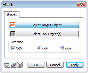 Attach the target shape and tool shape. Here, the selected shape moves in the direction with shortest distance between it and the shape to which it is being attached. If there are more than two tool shapes, the attaching shape moves to the closest tool shape.