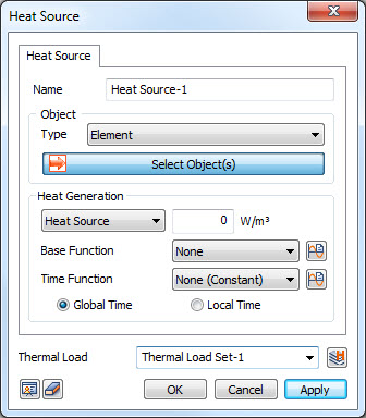objects to which the transient heat generation conditions