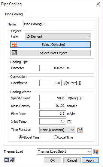the pipe cooling conditions to a desired thermal load