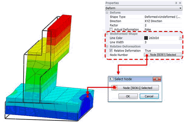 Express the node selected from the node number as a relative deformation.