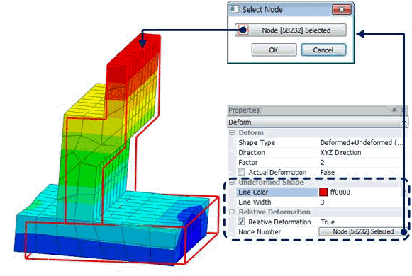 Output both the deformed shape and un-deformed shape (using the geometry shape colors under the transparency condition).