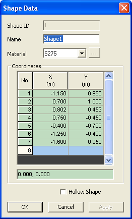 Draw any arbitrary shape by entering the coordinates into the table or by mouse-click on the model view. | ||
