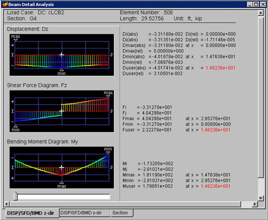 Beam Detail Analysis finds forces for moving load cases, load combinations