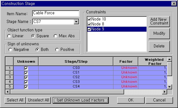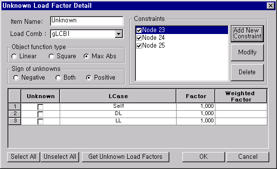 Weighted Factor: Weighted Factors are scale factors that control the relative importance of the unknown load factors in the object functions.