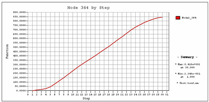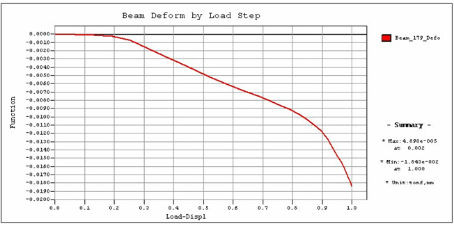 Name : Enter the name of a Graph Function. (Nodal displacement) . Node Number : Enter the node number or select the entry field then click the node with the mouse from the working window. Reference Point Absolute : Absolute displacement of the specified node Relative Node : Relative displacement to Relative Node Component : Specify a component direction of displacements. The directions of displacements may be DX, DY, DZ, RX, RY or RZ.