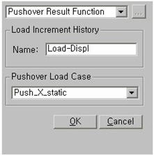 Specify the types of pushover analysis results, and define graphic output functions. Output functions can be also created or changed in Design > Pushover Analysis > Pushover Graph in the post-processing.