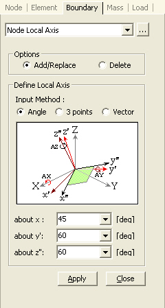 Select Geometry > Boundaries > Node Local Axis in the Menu tab of the Tree Menu. | ||
