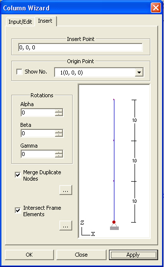 Insert Point Enter the coordinates of the insert point where the origin point of the created columns will be located in the existing model with respect to the GCS (UCS). Alternatively, click the entry field and click the position of the insert point in the working window to enter the desired coordinates rather than typing in the entry field.