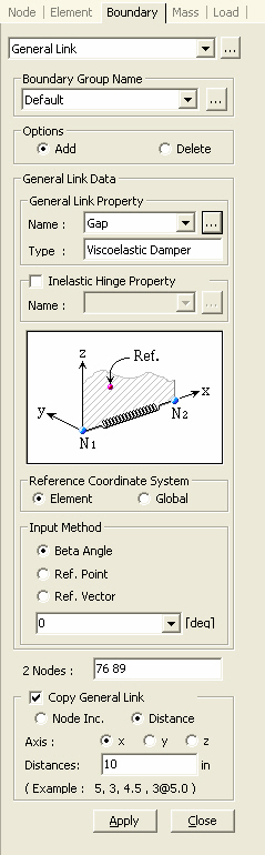A number of nonlinear link elements may be simultaneously created in Nonlinear Link Data by copying the specified condition.