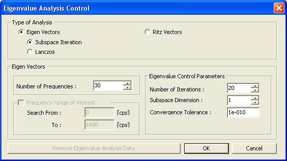 2. Invoke the Analysis > Eigenvalue Analysis Control menu and specify all the required data for performing eigenvalue analysis including the number of modes.