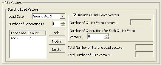 Number of Generations for Each GL-link Force: Enter the number of Ritz Vectors to be generated for each GL-link load.