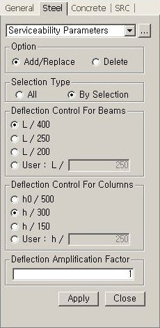 From the Menu tab of the Tree Menu select Design > Steel Design Parameter > Serviceability Parameters | ||