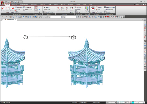 Dynamic View supports views (magnification, rotation, motion) of the model so that the model can be easily viewed from the desired viewpoints in real time relative to the motion of the mouse. If used in connection with