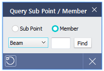 Sub Point : Both end of 1D member (Beam, Sub Beam, Brace) and Point Body can be managed as Sub Point. ID of subpoint is shown by clicking the point from model view using Query Sub Point function. The location of Sub Point is shown when ID is entered in the dialog.