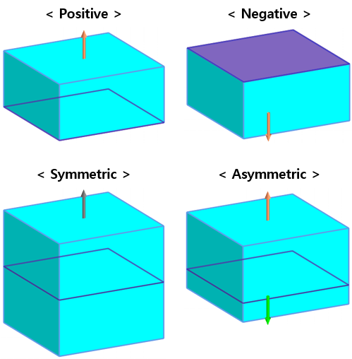 (Negative) : Extrude in the (-)normal direction of selected object.