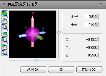 視点を指定して、モデルを任意の位置から見られるようにします。 |