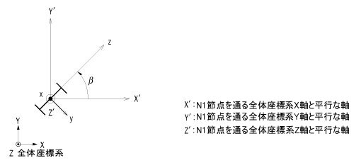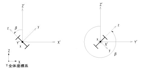 線要素の要素座標系x軸が全体座標系 Z軸と平行であれば、β-角度は全体