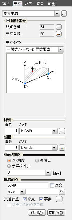 番号 :番号を直接入力またはマウスで既存の要素を指定して断面番号(厚さ番号)を