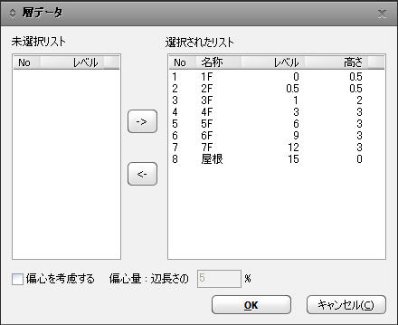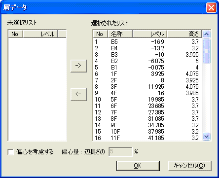 剛性/偏心率用高さ:剛性/偏心率用で構造グループで作成した層グループを指定した場合は剛性/偏心率用の高さを手動で