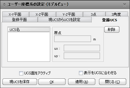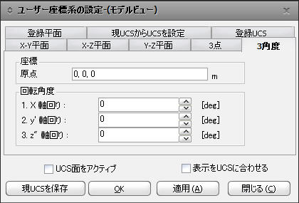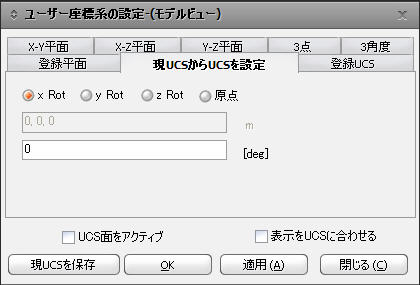 リボンメニュー : モデル > UCS/グリッド > UCS > X-Y 平面 リボンメニュー : モデル > UCS/グリッド > UCS > X-Z 平面 リボンメニュー : モデル > UCS/グリッド > UCS > Y-Z 平面 リボンメニュー : モデル > UCS/グリッド > UCS > 3点 リボンメニュー : モデル > UCS/グリッド > UCS > 3角度 リボンメニュー : モデル > UCS/グリッド > UCS > 登録平面 リボンメニュー : モデル > UCS/グリッド > UCS > 現UCSからUCSを設定 リボンメニュー : モデル > UCS/グリッド > UCS > 登録UCS ツリー メニュー : メニュー タブ > モデリング > ユーザー座標系 > X-Y 平面 ツリー メニュー : メニュー タブ > モデリング > ユーザー座標系 > X-Z 平面 ツリー メニュー : メニュー タブ > モデリング > ユーザー座標系 > Y-Z 平面 ツリー メニュー : メニュー タブ > モデリング > ユーザー座標系 > 3点 ツリー メニュー : メニュー タブ > モデリング > ユーザー座標系 > 3角度 ツリー メニュー : メニュー タブ > モデリング > ユーザー座標系 > 登録平面 ツリー メニュー : メニュー タブ > モデリング > ユーザー座標系 > 現UCSからUCSを設定 ツリー メニュー : メニュー タブ > モデリング > ユーザー座標系 > 登録UCS  |