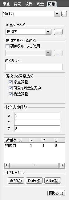 1つの荷重ケースに複数の物体力係数を入力することが可能です。また、物体力テーブルでは、