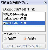 <水和熱解析> 切断面図 : 任意の断面で、切断した平面の応力を表示します。切断面で、水和熱の解析によって発生した応力を表示させるのに、 必要な詳細設定のダイアログボックスが下記のように現われます。