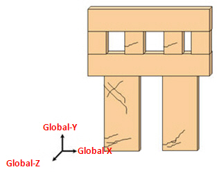 全体Yと全体Xは、重力方向と組積造の水平方向と一致いなければなりません。