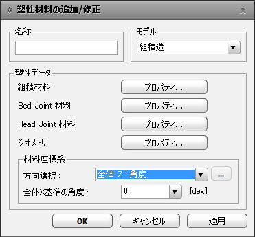 塑性材料の追加/修正ダイアログボックス