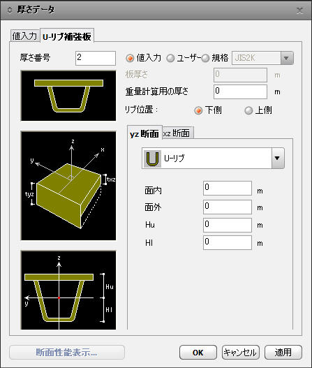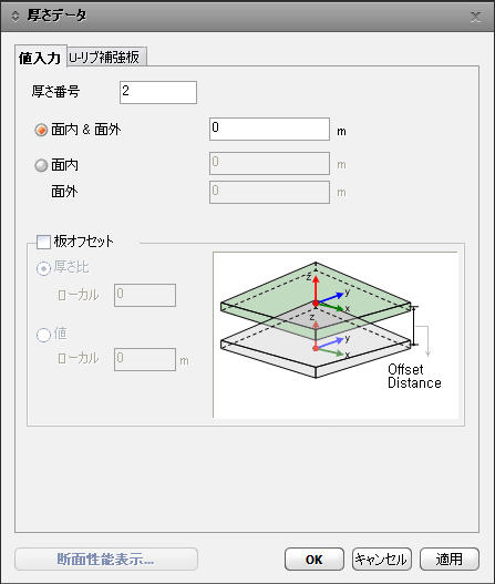 ただし、面内方向の厚さが'0'の場合は面外方向の厚さを適用します。